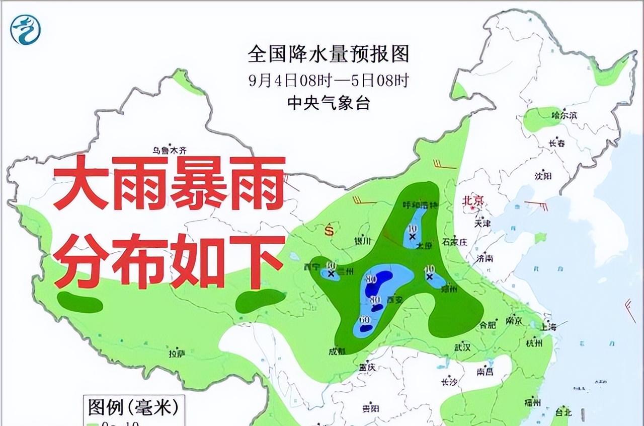 到了明天(9月4日),高空槽将携冷空气继续东移南下,西北地区东部到河南一带将出现强降雨天气。西北地区东部、内蒙古中部、华北西部、河南中西部、四川东北部、湖北北部等地的部分地区有中到大雨。其中降雨中心分布在甘肃东南部、陕西南部、四川东北部等地的部分地区雨势更为强劲,将迎来暴雨,降雨量预计在 50 到 80 毫米左右。